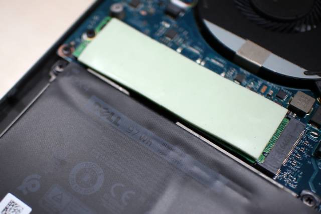 ▲无机械硬盘版本标配97Wh大电池,固态硬盘上的胶垫大概是为了辅助散热。