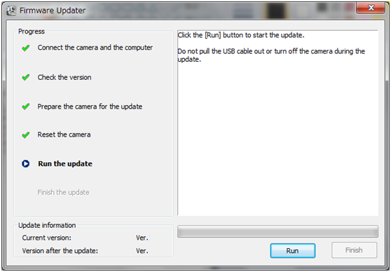 2. 点击 [Run]开始升级,升级进度条将在升级时出现。(大约15分钟)。