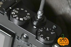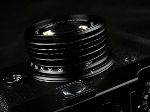 X100的速度转盘已经变成了模式转盘,开关从快门按键上挪到了镜头上,从这个角看,镜头还是有点影响便携性的。