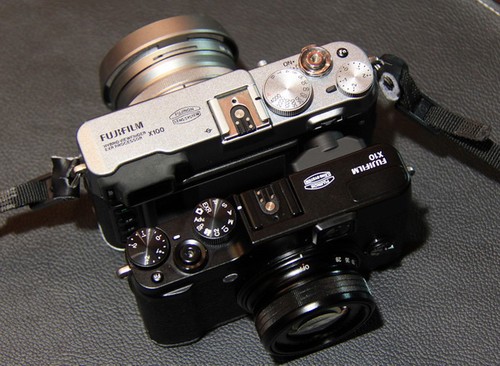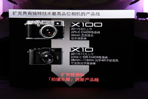为了能够拍摄一张下面这样的合影,我还特地把富士X100背到北京——估计今天下午来现场的媒体中也会有不少人和我一样这么干。对于富士X10我们实际除了真机没有上手外,其他都已经知道。 不过,当我们把富士X100和X10放在一起时,还是会有些特殊的感觉。