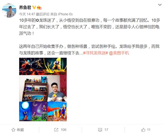 几天前,美图手机官方发起了一个#寻找龙珠迷#的话题活动,只要网友晒出自己的手办或者其他证明自己是七龙珠粉,就有可能被抽中美图M8s七龙珠限量版手机一台。就是这样一个普普通通的品牌营销活动,1天话题量就超过百万了,七龙珠粉可以说都“炸”了,恨不得“翻家底”来证明自己是“最铁龙珠粉”,不少粉丝甚至表示,美图M8s七龙珠限量版手机是他们现在最想要的“周边”。