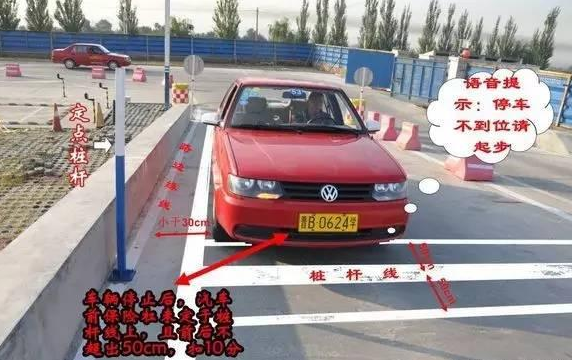 3. 准确定点停车始终紧紧追对定位铁板左前角,直到看不见时为止;