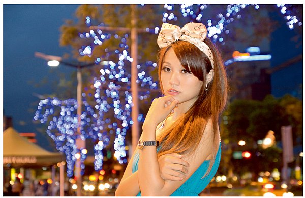 Nikon D3200 + Tamron SP 17-50mm F/2.8 XR Di ll LD Aspherical,夜景人像模式,光圈F2.8,快門1/15秒,ISO 450。模特兒:小毓。攝影:Kay。