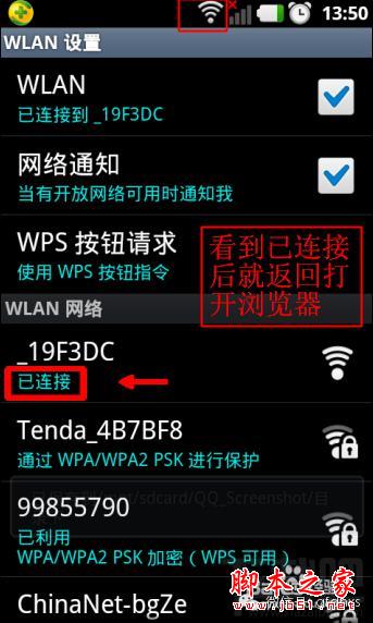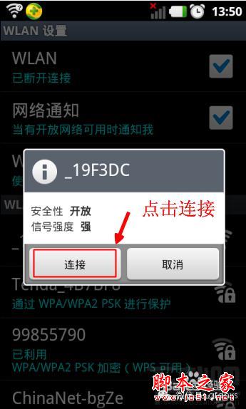 2. 打开电话的=“ [设置] =” [无线和网络] =“ [检查网络通知],您将找到路由器的信号. 但是,Internet暂时被禁用. 例如,不同的计算机将自动获得IP和网络电缆帐户)