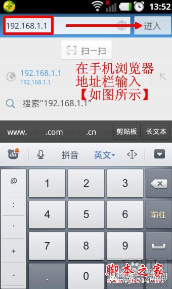 1. 打开手机的浏览器,最好使用主流浏览器,在地址栏中=“ [输入192.168.1.1],然后单击进入.
