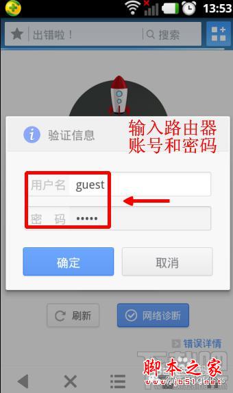 2. 然后在路由器登录框中=》 [输入路由器用户名] =》 [路由器登录密码] =》 [单击确定]