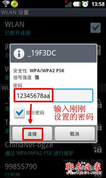 5. 然后=“ [加密的WIFI图标] =” [输入您刚刚填写的无线密码] =“ [单击以连接]