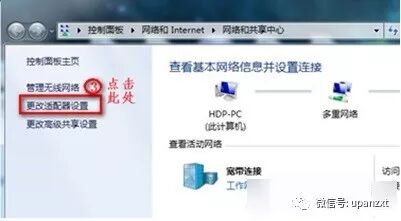 2,单击“更改适配器设置”.