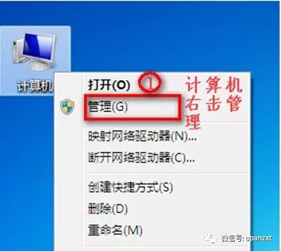 5. 在桌面上,右键单击“计算机”,然后选择“管理”.