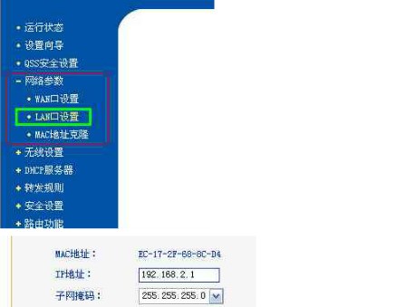 由于光纤调制解调器和无线路由器的地址相同,将引起冲突,因此需要修改路由器的地址. 在网络参数中,如图所示,设置LAN端口以修改IP地址,单击“保存”,然后重启路由器.