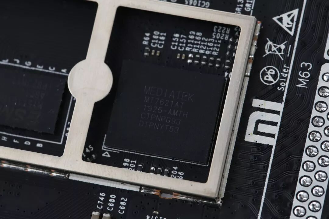 为了确保有效的散热,在Redmi路由器AC2100的顶部和底部设计了许多散热孔. 不仅如此,在拆卸该路由器之后,我们还发属散热器,其厚度约为2毫米,用于冷却PCB板上的核心组件. 去除金属屏蔽层后,我们看到了该路由器的所有核心芯片. Redmi路由器AC2100使用与我们之前与您共享的Xiaomi路由器AC2100相同的MediaTek整体解决方案.