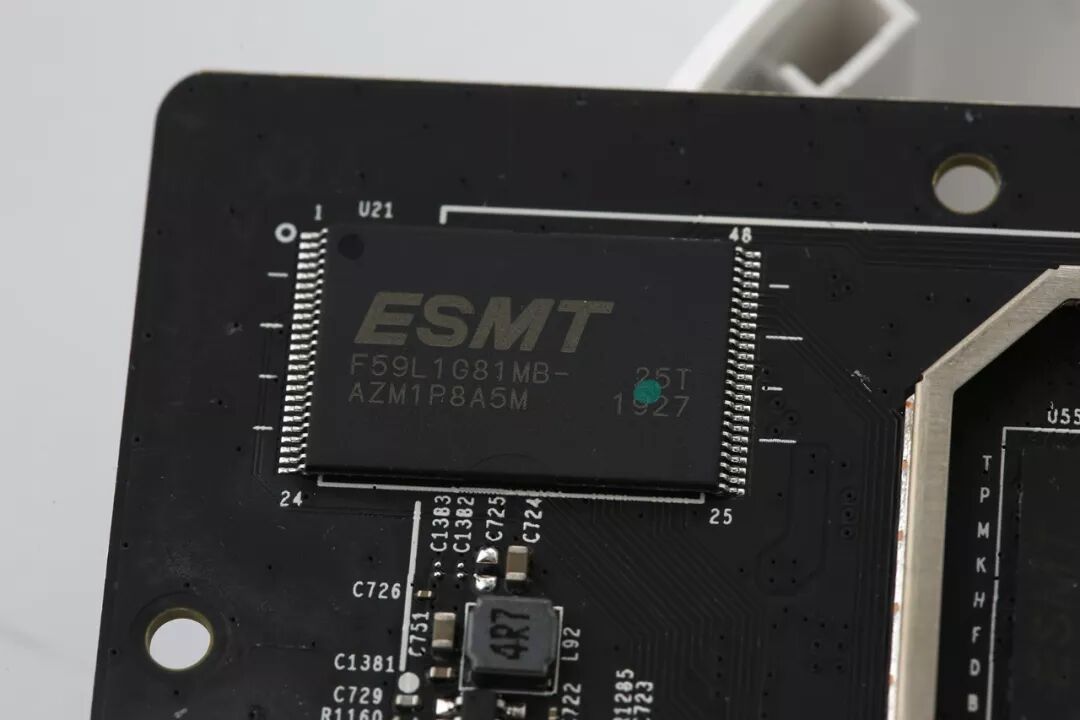 CPU型号为MT7621A,这是一个双核四线程处理器,核心频率为880MHz. 负责5GHz频段的无线网络芯片型号为MT7615,其最高理论传输速率为1733Mbps,并支持4x4: 4SS 11ac wave2 MU-MIMO(多用户多输入多输出)技术. 负责2.4GHz频带的无线网络芯片模型MT7603E具有300Mbps的最大理论传输速率. 此外,该路由器还配备了京昊科技的128MB DDR3 1866内存,并且ROM也是京昊科技的F59L1G81MB,容量为128MB.