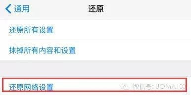 进入iPhone恢复设置页面,我们可以在页面中看到“恢复网络设置”,选择并恢复网络设置,然后重新启动手机,重新连接WiFi,然后再次打开App Store尝试解决问题吗?