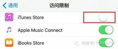 如果访问限制当前处于打开状态,请查看下面的iTunes Store是否也处于打开状态?如果是,请直接将其关闭