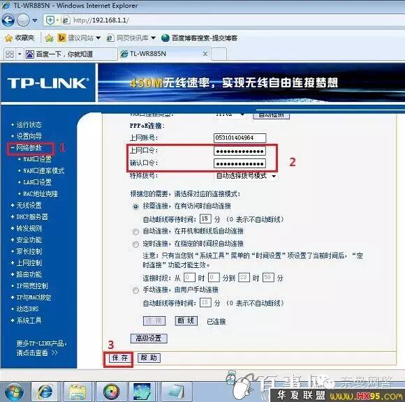 2. 登录路由器设置界面后,单击左侧的[网络参数]设置,然后即可在右侧看到PPPoE连接Internet帐户设置. 我们将Internet密码和确认密码更改为新的宽带密码,并在完成后单击底部的[保存],如下图所示.