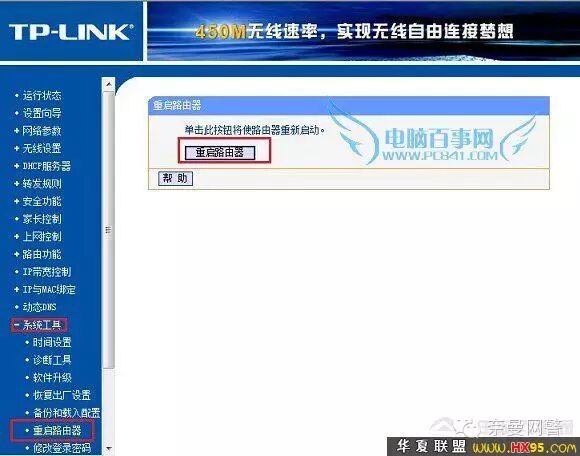 3. 单击左下方的[系统]工具,然后单击下面的“重新启动路由器”,然后单击右侧的“重新启动路由器”,如下图所示.