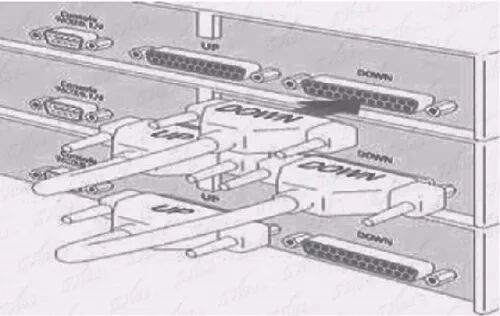 交换机的堆叠连接端口通常配有D形插孔. 交换机具有两个这样的端口,分别用“ UP”和“ DOWN”标记(如上图所示),指示它们用于向上. 连接到上部堆叠的端口不能错误地连接.