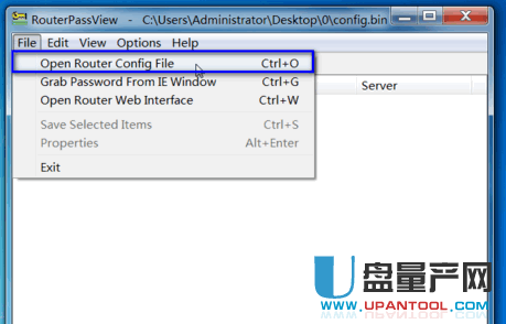 5. 然后下载RouterPassView软件,直接将其打开,然后单击“打开路由器配置文件”