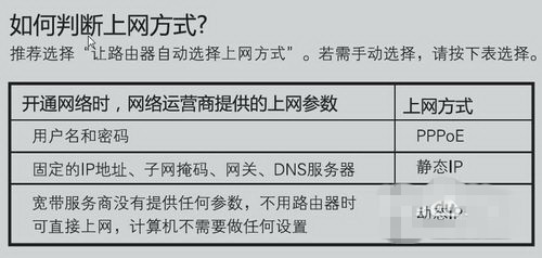 我如何知道哪种方式访问Internet?如果路由器上有“让路由器自动选择Internet访问方法”,请选择它,或者您可以参考下图: