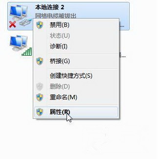 5. 右键单击“本地连接”,然后选择“属性”
