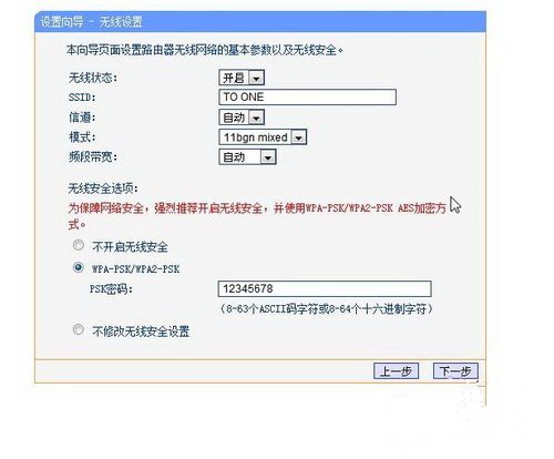 (6)设置完上述步骤4和5后,下一步是设置无线网络. 选择打开无线状态,默认更改ssid(wifi名称),其他通道,模式和频带带宽. 设置WiFi密码,一般选择“ WPA-PSK / WPA2-PSK”. 如何在家中安装wifi