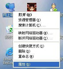 4. XP计算机的设置方法: 右键单击“网上邻居”,然后选择“属性”