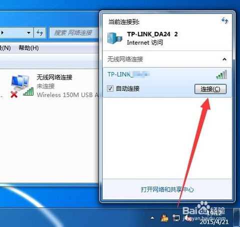 然后在笔记本的右下角,找到“无线网络连接”,找到您的家庭WIFI设备的名称,然后输入您设置的WIFI密码,单击“连接”,即可使用无线网络进行浏览互联网. (如下图所示)