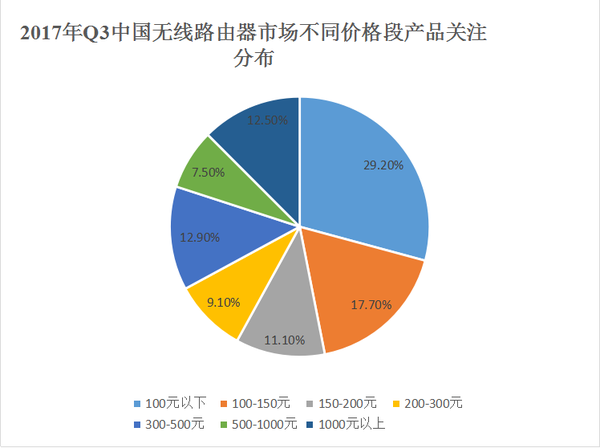 高价产品很受欢迎. 用户越来越倾向于在功能齐全,质量高,服务高的高端品牌无线路由器上花更多的钱. 无线路由器的功能要求不仅是可以支持无线Internet访问的工具,而且还需要照顾生活和工作. 稳定高效运行的超级机器. 根据中关村的数据,价格在100元以下的无线路由器中,有29.2%是最高的. 100-150元的价格范围排名第二,关注度为17.7%. 总体而言,尽管100元以下的产品仍然占据了近三分之一的关注. 但是百元以上产品的总关注度为70.8%,甚至百元以上产品的关注度也达到了12.5%. 花更多的钱购买更好的WiFi网络已成为市场上的主流现象.