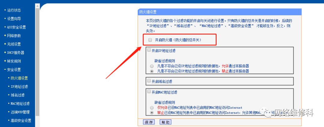 3. 关闭后,单击“保存”,无线路由器防火墙将关闭,您可以随意浏览Internet