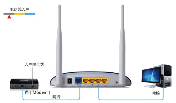 2. 没有电信猫: 网线----路由器WAN口;路由器局域网端口----计算机.