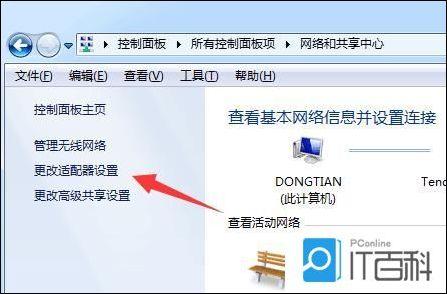 输入后,单击左侧菜单栏中的“更改适配器设置”