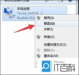 这时,我们打开我正在使用的本地连接,右键单击“状态”