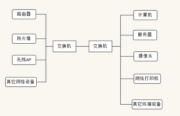 交换机,路由器和防火墙几乎是现代局域网中使用的所有网络设备. 其中,交换机负责连接网络设备(例如交换机,路由器,防火墙,无线AP等)和终端设备(例如计算机,服务器,摄像机,网络打印机等);路由器实现局域网与局域网之间的互连,以及局域网与互联网之间的互连. 防火墙作为一种安全的网络设备,在内部网络与内部网络之间或内部网络与Internet之间起作用. 通常,交换机负责连接设备,路由器负责连接到网络,防火墙负责网络访问限制.