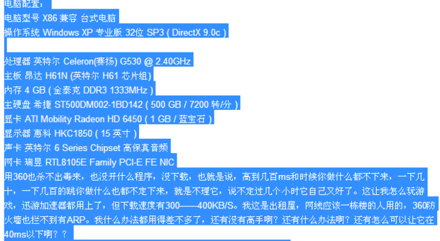 除了球和360,没有其他软件可以运行,并且该软件没有问题. 该计算机也是以前的计算机. 它只是改变了居住的地方并重新拉了网线.