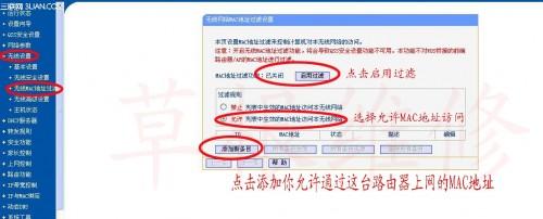 4. 选择允许: 列表中有效的MAC地址可以访问此无线网络.