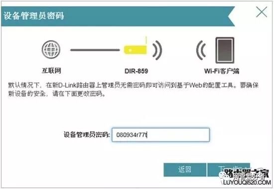 5. 设置D-Link DIR-859无线路由器的“设备管理员密码”,即登录密码->单击“下一步”.