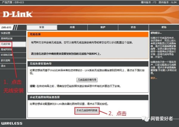 第三步是单击无线安装,然后单击手动进行无线Internet安装,请参见下图;