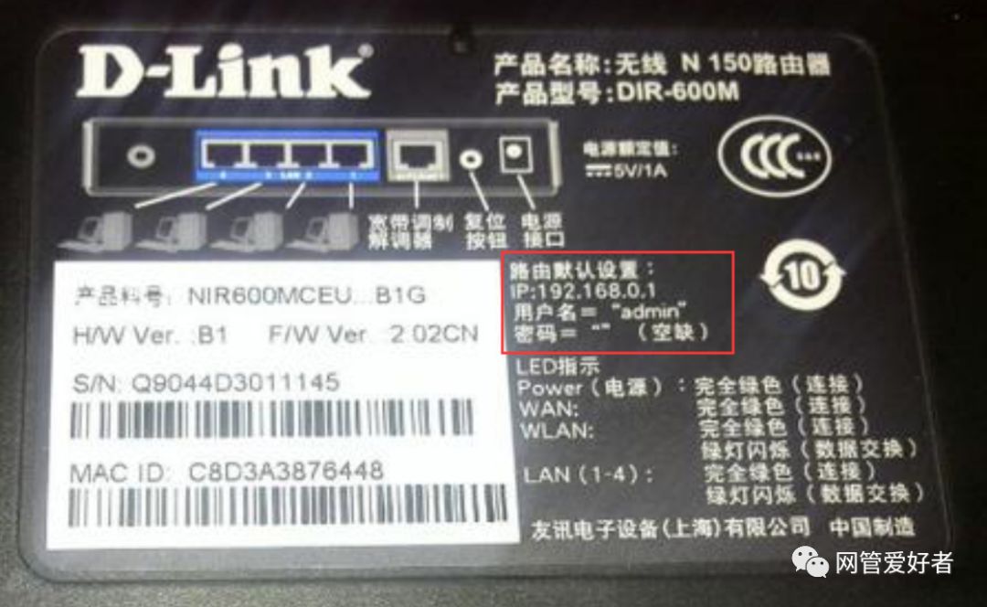 D-Link无线路的反面