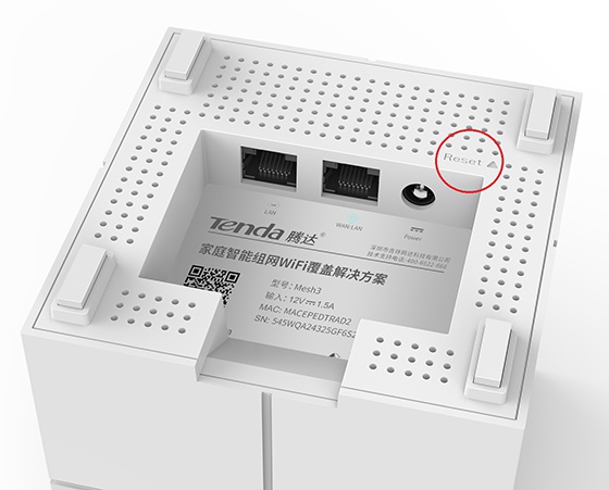 每个Tenda Mesh路由器在底部都有一个电源插孔,WAN端口和LAN端口,以及一个重置按钮RESET,可以重置并重置有问题的单个路由器,而不会影响整个WiFi解决方案;