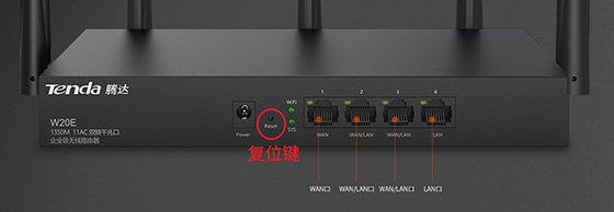腾达企业路由器的重置方法与家用无线路由器相同. 开机后,只需找到重置按钮并按下并释放即可.