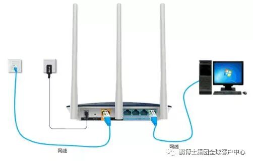 将长城宽带提供的网络电缆连接到路由器的WAN端口,并将计算机连接到路由器的任何LAN端口1〜4。请按如下所示进行连接:
