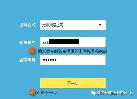 注意:76%的用户无法输入Internet,因为他们输入了错误的宽带帐户和密码。请仔细检查所输入的宽带帐号和密码是否正确,并注意区分中英文输入,字母大小写和完整的后缀。如果不确定,请咨询您的宽带运营商。