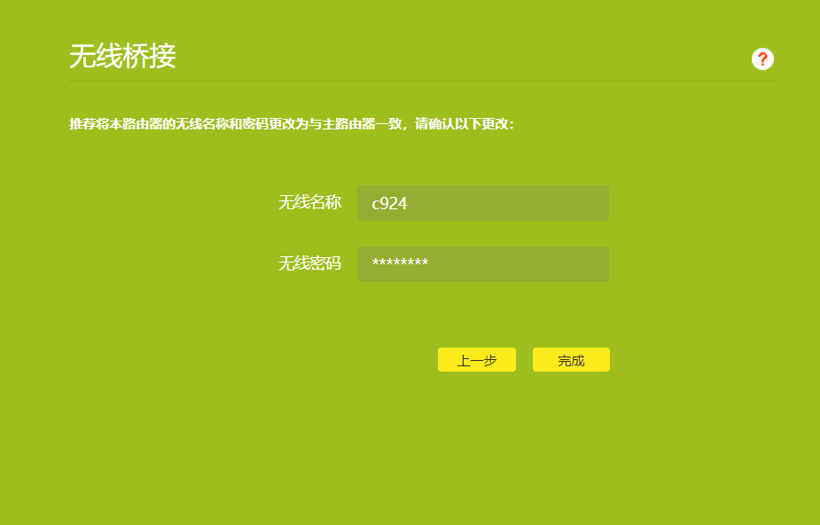 实际上,在此步骤中,辅助路由器的无线桥接已完成。此时,单击“完成”后,辅助路由器将自动重启。重新启动后,您可以在wifi信号中找到备用路由器,然后输入刚刚设置的密码,您可以直接连接到备用路由器。