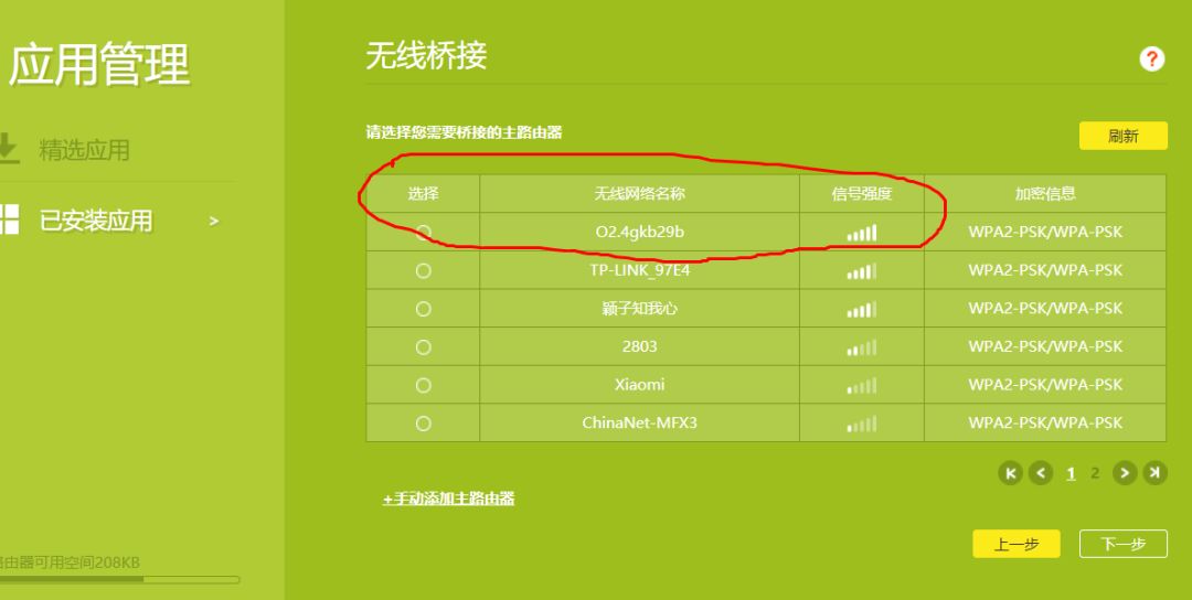 选择主路由器的wifi名称,然后单击下一步,输入主路由器的wifi密码(因此请记住主路由器的wifi密码)。