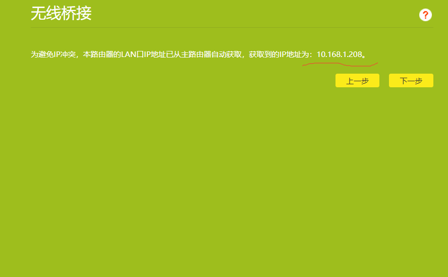此IP地址是成功桥接后辅助路由器的IP地址。