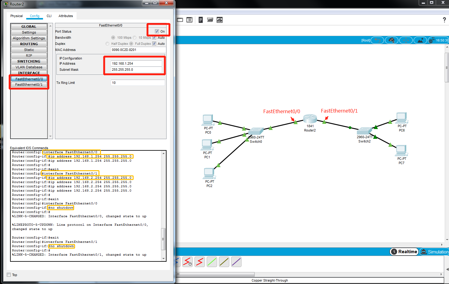 首先,为路由器的两侧配置ip,左侧网段ip为19 2. 16 8. 1. x,右侧网段ip为19 2. 16 8. 2. x,x可以是1〜254,当然不能和pc host ip相同;