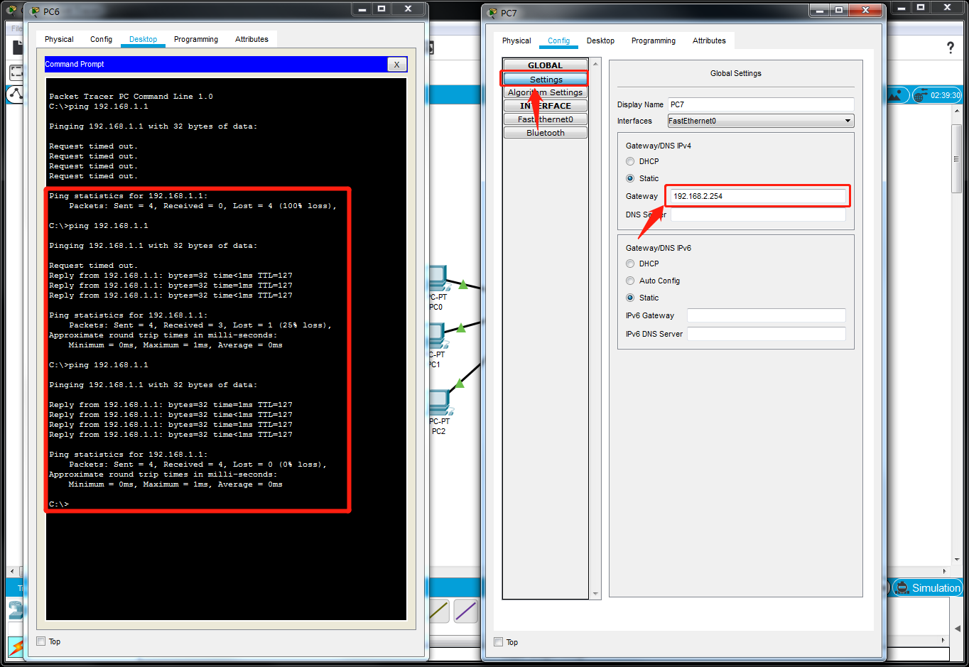 学习了一天之后,我发现PC主机中未配置网关地址;