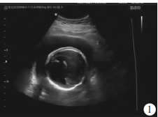 孕妇39岁,妊娠5月余,既往无感染史及放射接触史,无畸形分娩家族史。超声表现:宫内见一个胎儿,可见胎头光环,双顶径6.2 cm,头围21.1 cm,腹围18.5 cm,股骨径4.7 cm,肱骨径4.2 cm,胎盘后壁,厚2.5 cm,羊水指数26 cm,胎心155次/min。胎儿颅内仅见原始脑室,中央可见融合的丘脑,脑中线、透明隔腔及第三脑室消失(图1)全前脑畸形。