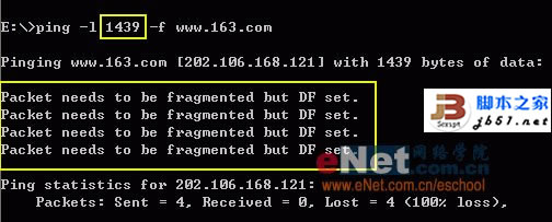 如图6,数据包大小升为1439,提示因数据包过大无法传输,因此,判断出该ISP的MTU值为1438