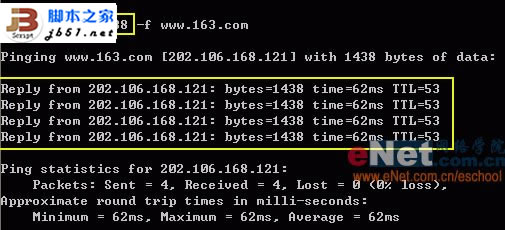 2. 输入命令“ping –l 14xx –f ”,这里我们解释一下命令参数的含义